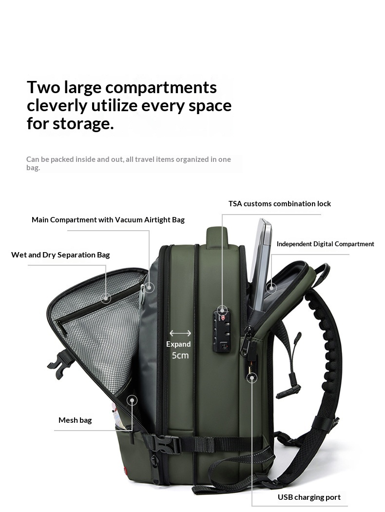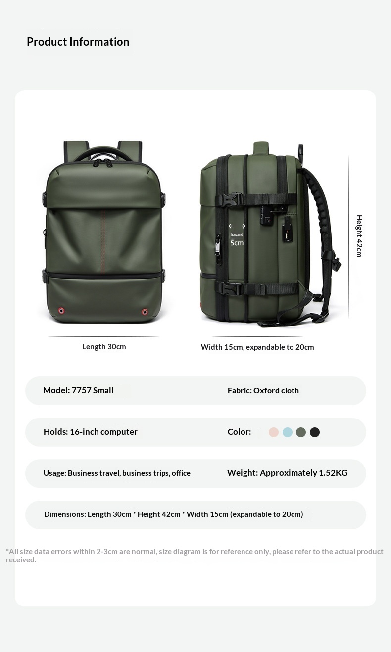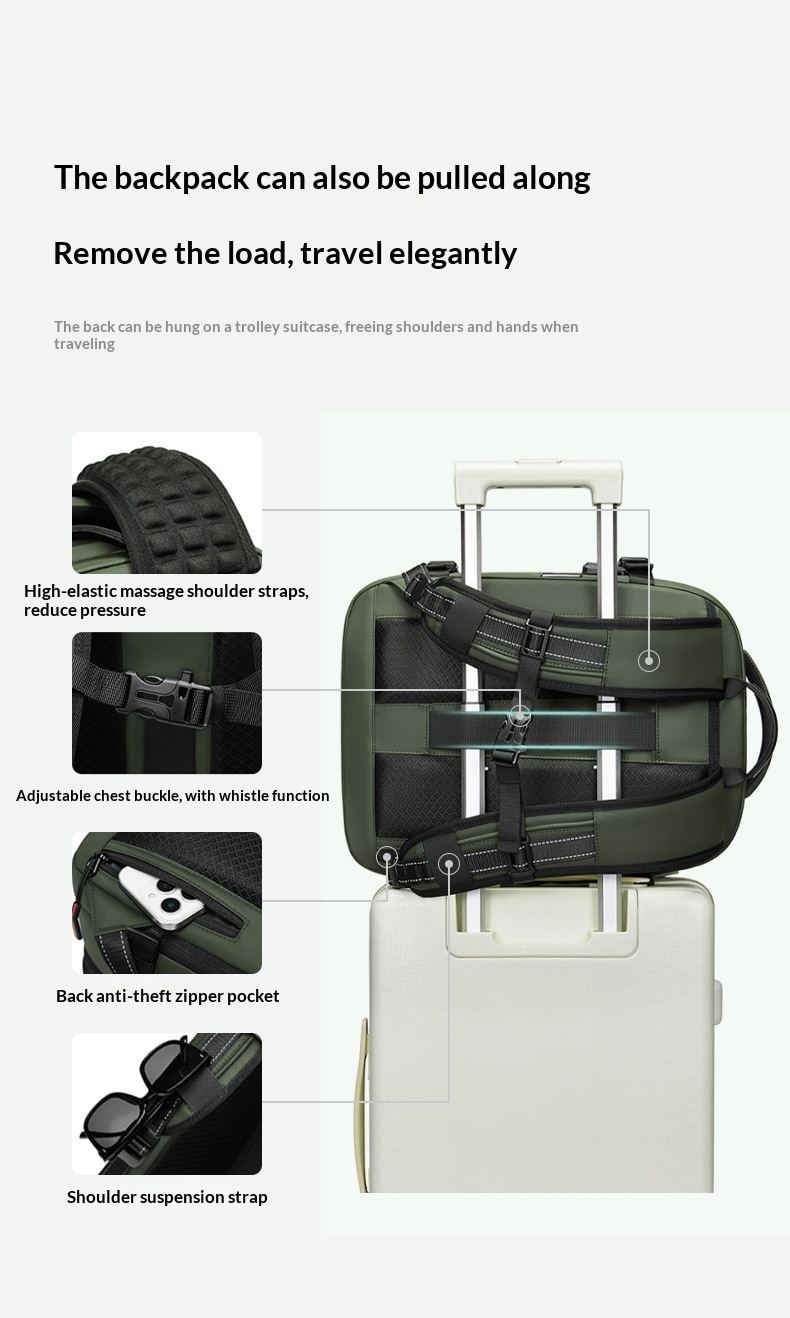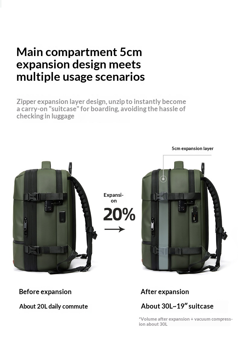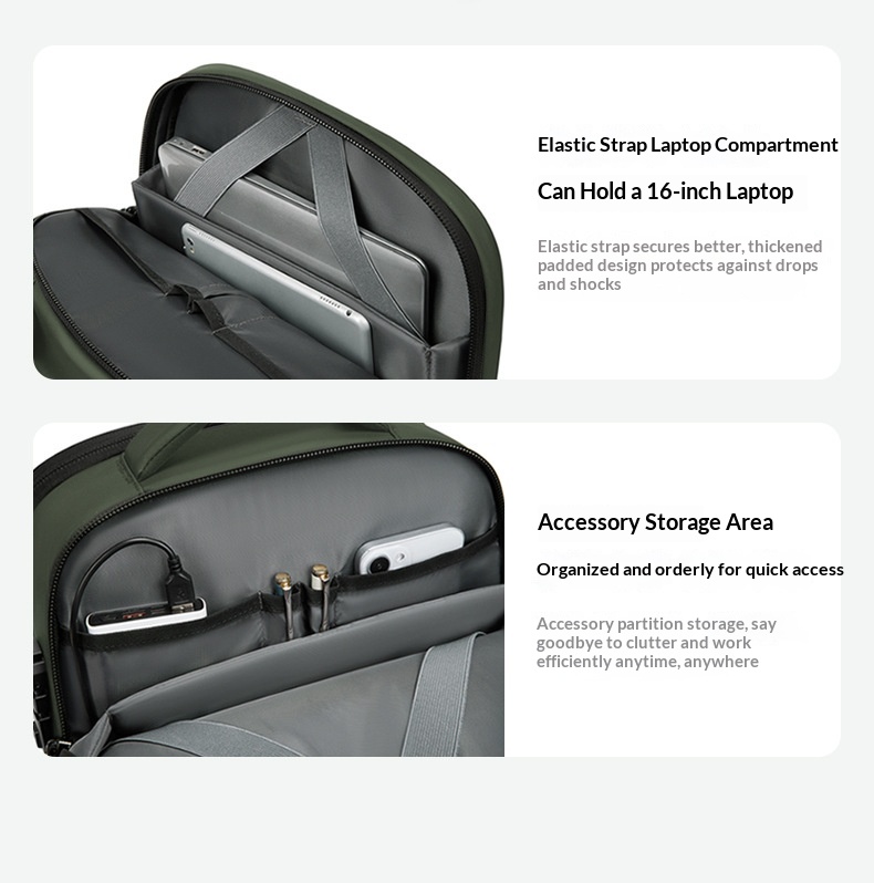 Mit einem erweiterbaren Volumen von 20–35 Litern passt sich diese 16-Zoll-Computertasche mühelos Ihren täglichen Bedürfnissen an – egal ob Sie Laptop, Dokumente, Ladegerät oder Reiseutensilien transportieren. Die ergonomisch geformten Schultergurte entlasten Ihre Schultern und sorgen dafür, dass der Rucksack den ganzen Tag über leicht und komfortabel bleibt.