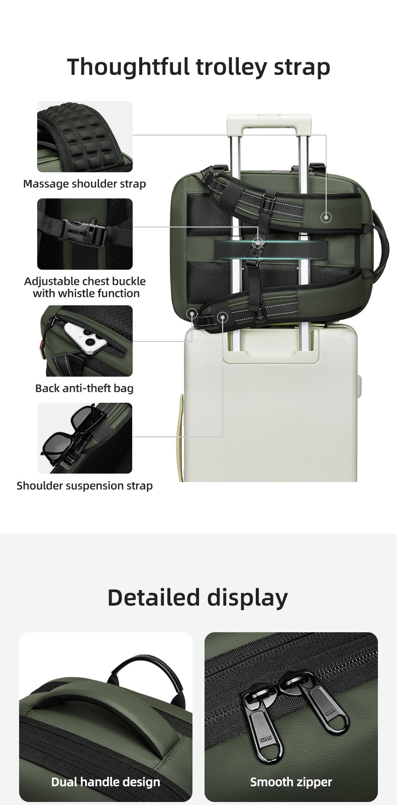 Es eignet sich perfekt für Geschäftsreisen, Pendelfahrten und den täglichen Arbeitsalltag und bietet Komfort, Schutz und Organisation in einem schlanken, kompakten Design.