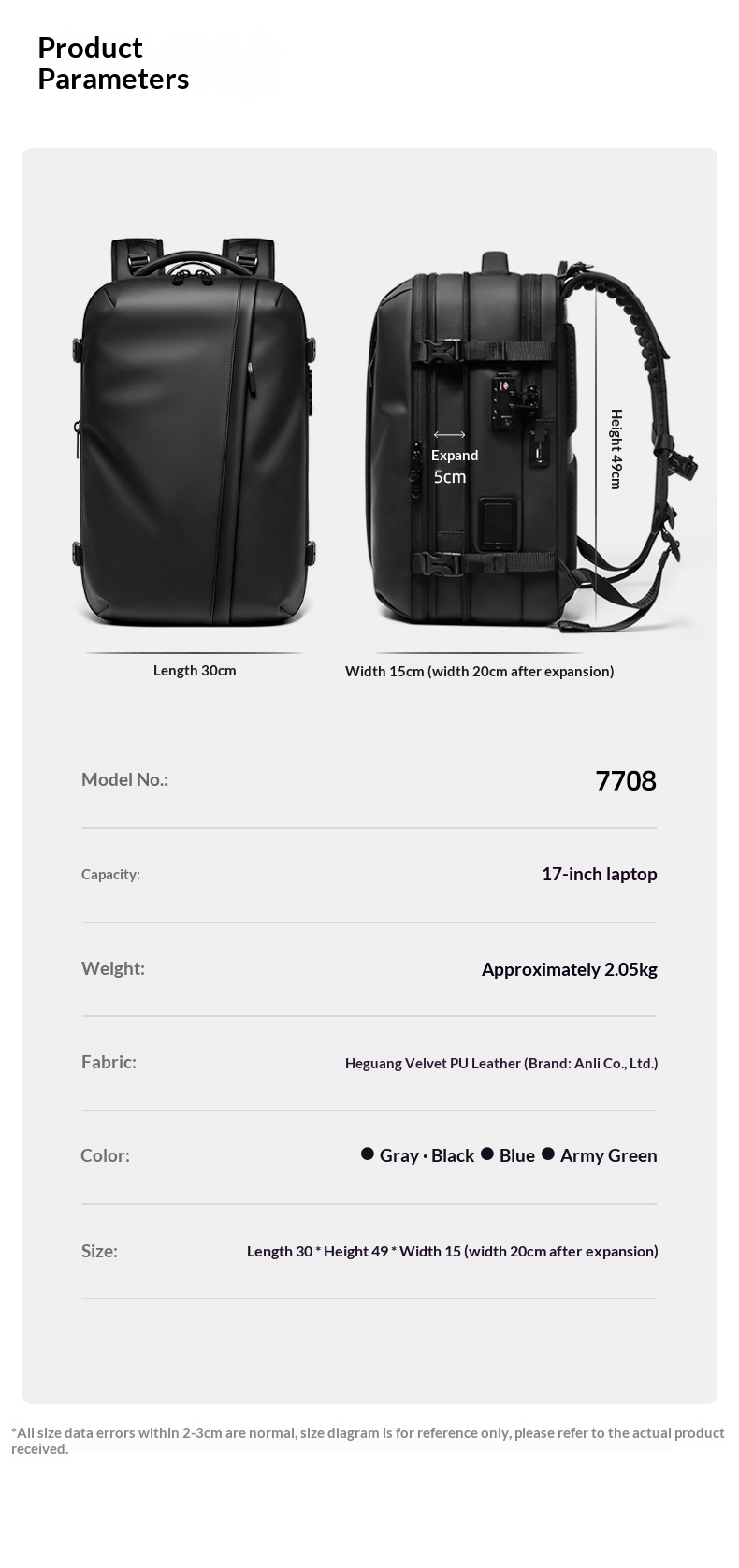 Crafted from high-quality Oxford cloth, the backpack is waterproof, breathable, and wear-resistant, keeping your belongings protected in all conditions. The large 56–75L capacity easily fits laptops, documents, clothing, and daily essentials, making it ideal for both short and long journeys.