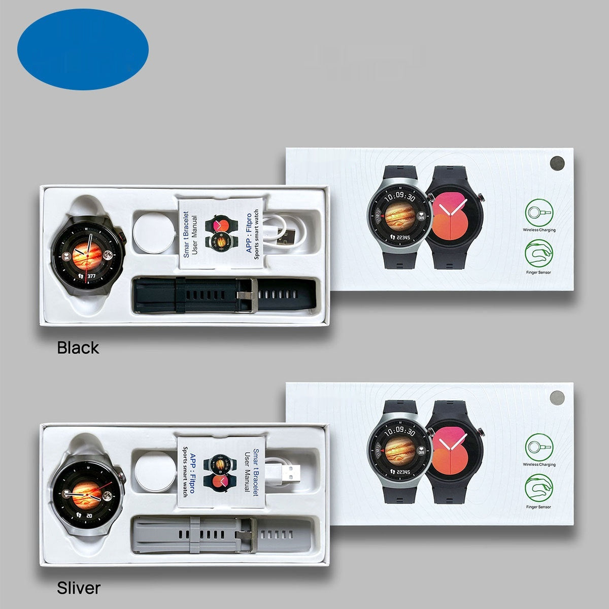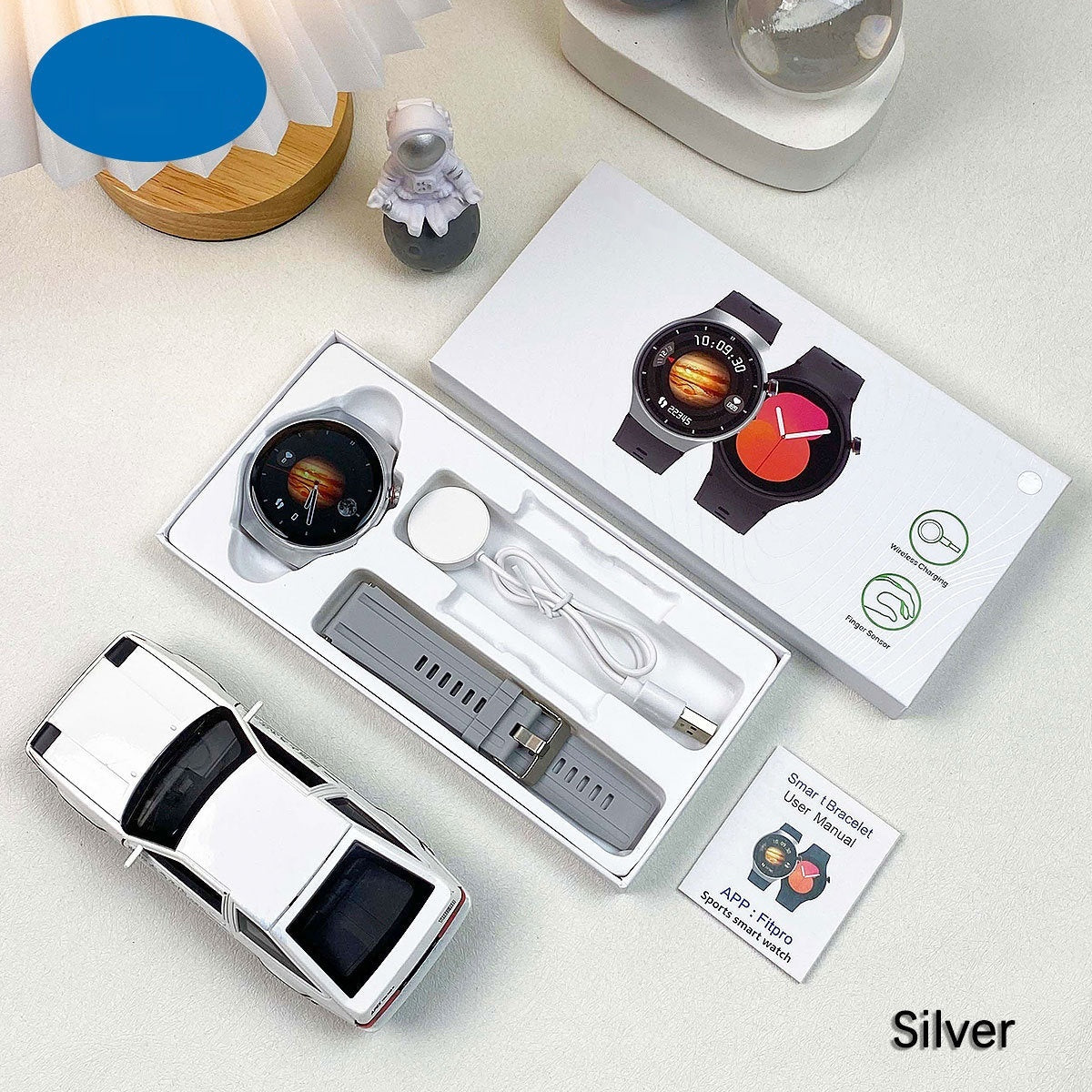 1 × Smart Watch • 1 × Strap • 1 × Wireless Charger • 1 × Manual • 1 × Color Box