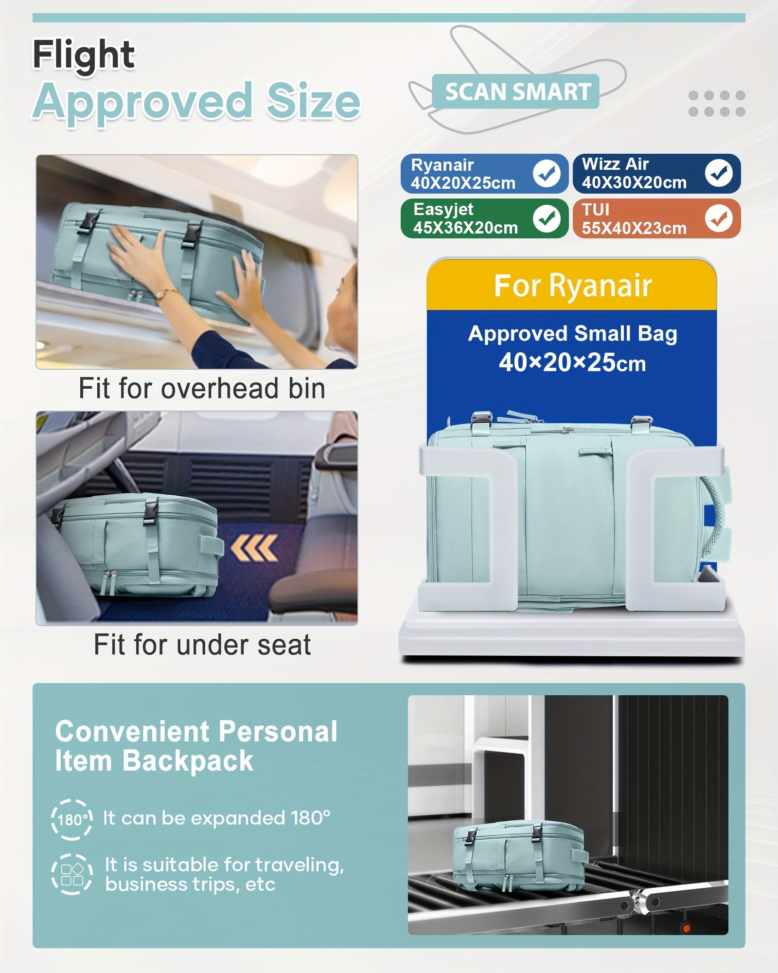 ✅ Lichtgewicht & compact – Handig formaat (40x20x25 cm), geschikt als handbagage in het vliegtuig.